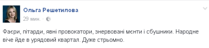 "Фаєри, петарди, явні провокатори, нервові менти і СБУшники. Народне віче йде в урядовий квартал. Дуже стрьомно", - написала вона.