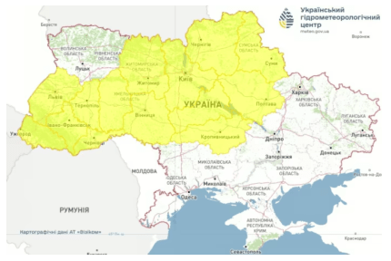 - Синоптики також оголосили I рівень небезпечності (жовтий).