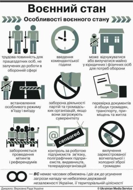 Однак не обов'язково всі ці заходи будуть здійснені, остаточний перелік заходів у межах введеного воєнного стану визначає президент своїм указом.