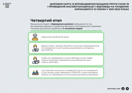 Важливо відзначити, що глава МОЗ України Максим Степанов вже підписав Дорожню карту щодо проведення масової вакцинації від COVID-19 в Україні в 2021-2022 роках. Як відомо, вакцинація від COVID-19 в Україні буде виключно добровільною. Влада розраховує вакцинувати протягом найближчих двох років половину населення. Перший етап запланований на січень 2021 року, але терміни можуть зрушити на незначний час - все залежить від поставок вакцини. Імунізація буде проводитися на базі кабінетів і пунктів щеплень, яких зараз в Україні налічується понад 11 тисяч. Крім того, будуть організовані мобільні бригади по імунізації, а також тимчасові центри вакцинації за прикладом Італії та Німеччини. Кампанія з вакцинації від коронавірусной хвороби в 2021-2022 році буде проводитися в 5 етапів.