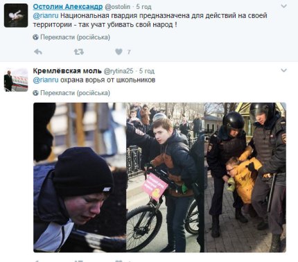 Як повідомляв ONLINE.UA, 26 березня в Москві пройшли масові акції протесту проти корупції: в центрі міста силовики проводили затримання в тому числі і підлітків.