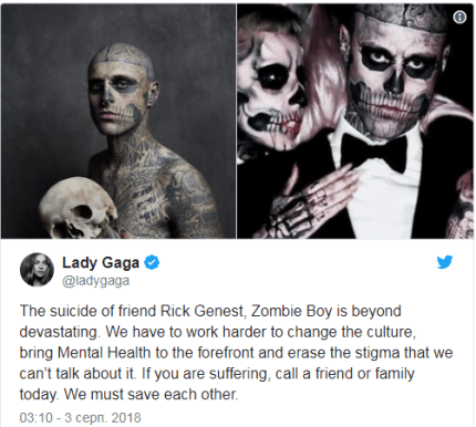 "Самогубство Ріка Дженест більш ніж спустошливе. Нам потрібно більше працювати, щоб змінити культуру і вивести психічне здоров'я на перший план. Якщо тобі погано - відразу ж подзвони другу або сім'ї",- зазначила співачка.