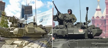 Слева: T-90A в России в 2013 году. (Источник - Викимедиа); справа: Т-90А на востоке Украины