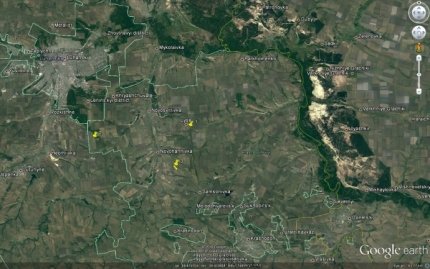 Геолокация видео. Сверху: примечательные территориальные особенности на скриншоте из видео; внизу: те же точки, отмеченные в Google Earth (Источник: @ askai707)