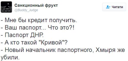 На сторінці блогера, який пише в Twitter під ніком Санкційний фрукт, з'явилося три анекдоту.
