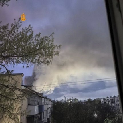 За словами очевидців, після низки гучних вибухів на місці влучання почалася масштабна пожежа. У небо над містом піднявся високий стовп густого чорного диму.