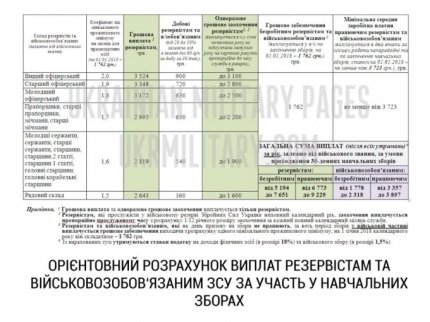 - одноразова допомога за підсумками служби в резерві за минулий рік (1600-3100 грн).