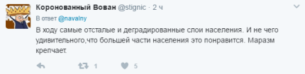 Варто зазначити, що цей допис опозиціонера викликав величезний резонанс у соціальних мережах: росіяни зізнаються, що їм соромно дивитися ролик, та звинувачують його учасників у психічній неповноцінності.