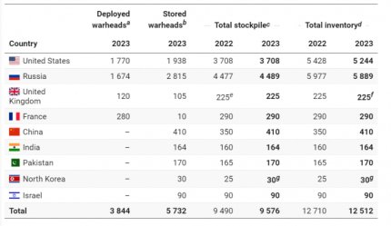 Розміри їхніх ядерних арсеналів, здається, залишалися відносно стабільними у 2022 році, - йжеться у звіті SIPRI.