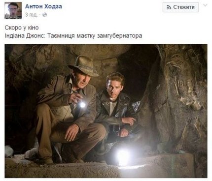 "Скоро в кіно. Індіана Джонс: Таємниця маєтку замгубернатора", - пізніше додав Антон Ходза.