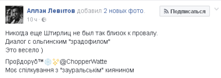 "Ніколи ще Штірліц не був такий близький до провалу. Діалог з ольгинским "зрадофилом". Це весело )" — написав він про своє спілкування з "зауральским" киянином.