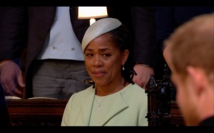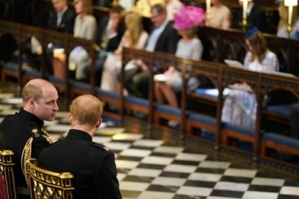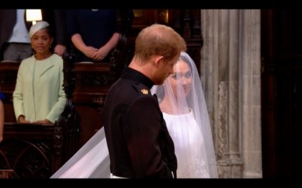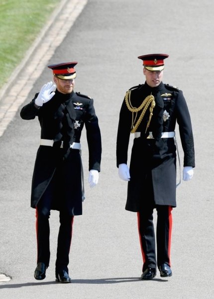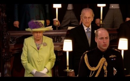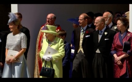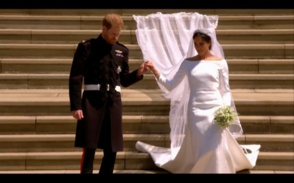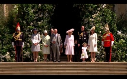 Але усю увагу в цей день було залучено до молодят - принцу Гаррі і Меган Маркл, а також до їх нарядів. Меган на весілля вибрала білосніжне плаття, яке доповнювала 5-метрова фата і діамантова тіара, яку їй позичила королева. Принц Гаррі надів форму, як це робили його брат, батько і дід, хоча і не є чинним військовослужбовцем, тому міг самостійно вибрати для себе будь-який весільний костюм.