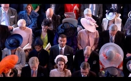 Ще за годину до початку церемонії одруження принца Гаррі і Меган Маркл до Віндзорському замку почали збиратися гості, які підкорили британців своїми вишуканими нарядами. Серед них були присутні Амаль і Джордж Коуні, Девід і Вікторія Бекхем, співак Джеймс Блант з дружиною Софією Веллеслі, музикант Елтон Джон зі своїм коханим Девідом Фернішем, актор Том Харді з дружиною, актор Ідріс Ельба з нареченою Сабріною Даур, актриса і телеведуча Опра Уїнфрі, тенісистка Серена Вільямс з чоловіком Алексісом Оганяном та багато інших.