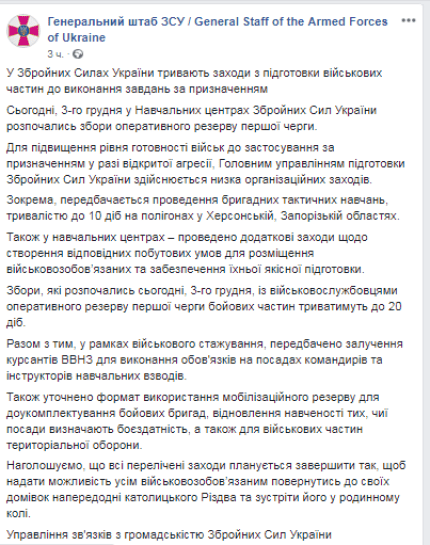 Раніше ONLINE.UА повідомляв, що 3 грудня в Україні стартували масштабні військові збори, направлені на підготовку людських резервів для відповіді на збройну агресію.