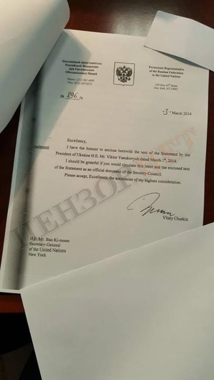 За даними журналістів, саме цей документ на засіданні Ради безпеки ООН 3 березня 2014 року продемонстрував представник Росії Віталій Чуркін.