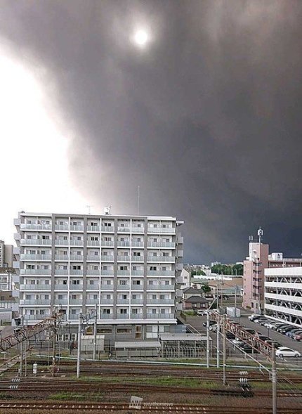 Жителі острова Кюсю, розташованого в Японії, переживають справжній "кінець світу" через потужне виверження вулкана Сакурадзіма, стовпи попелу якого піднялися в висоту майже на 5 км.