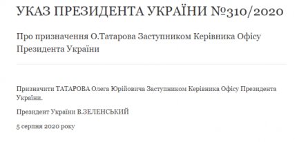 Що стосується Татарова, то на Банковій його охарактеризували як доктора юридичних наук, професора, заслуженого юриста України, адвоката, який довгий час працював в органах внутрішніх справ, зокрема обіймав посаду заступника начальника Головного слідчого управління МВС України, а з 2014 року займався адвокатською практикою .