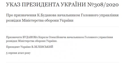 "Офіс Президента вітає призначення Кирила Буданова на цю посаду. Зміна начальника Головного управління розвідки Міністерства оборони пов'язана з необхідністю переформатування і інтенсифікації роботи, пошуку і впровадження сучасних підходів і поглядів на вирішення питань безпеки", - прокоментували кадрові перестановки в ГУР у Зеленського.