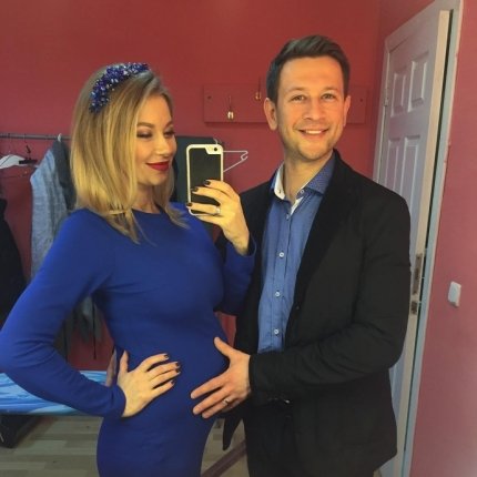 У мікроблозі дівчини з'явилося фото, на якому вона позує з помітно округленими формами, а Дмитро ніжно тримає її за живіт.