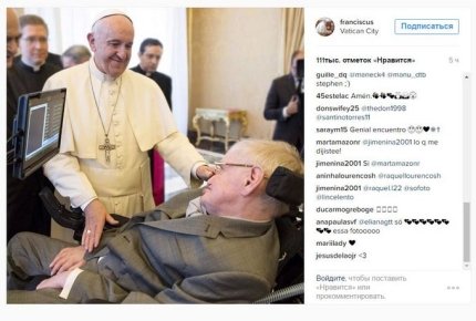 У мережі з'явилося фото зустрічі Папи Римського Франциска з відомим фізиком-теоретиком Стівеном Хокінгом в Ватикані, яке зворушило користувачів мережі.