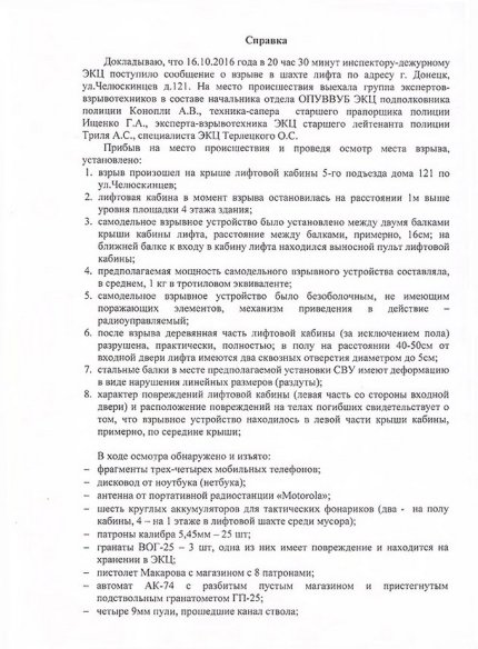 Хакери стверджують, що документи від 17 жовтня були вкрадені з робочого ПК "ЕКЦ МВС" ДНР Світлани Шерстобитової. У них йдеться про те, що експерти-вибухотехніки виявили та вилучили на місці вибуху: