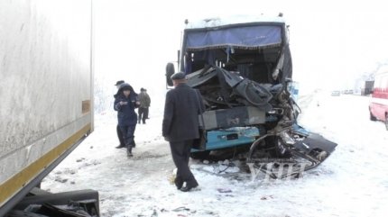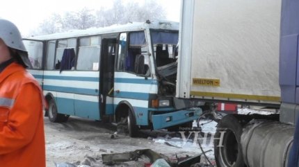 В результаті аварії загинув водій мікроавтобуса. Ще 19 осіб отримали травми.