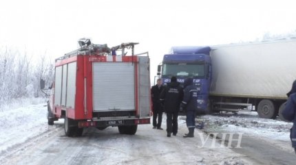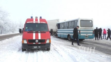 За попередньою інформацією водій вантажівки "ДАФ" в умовах ожеледиці не впорався з керуванням, в результаті чого вилетів на зустрічну смугу, де зіткнувся з автобусом "Еталон".